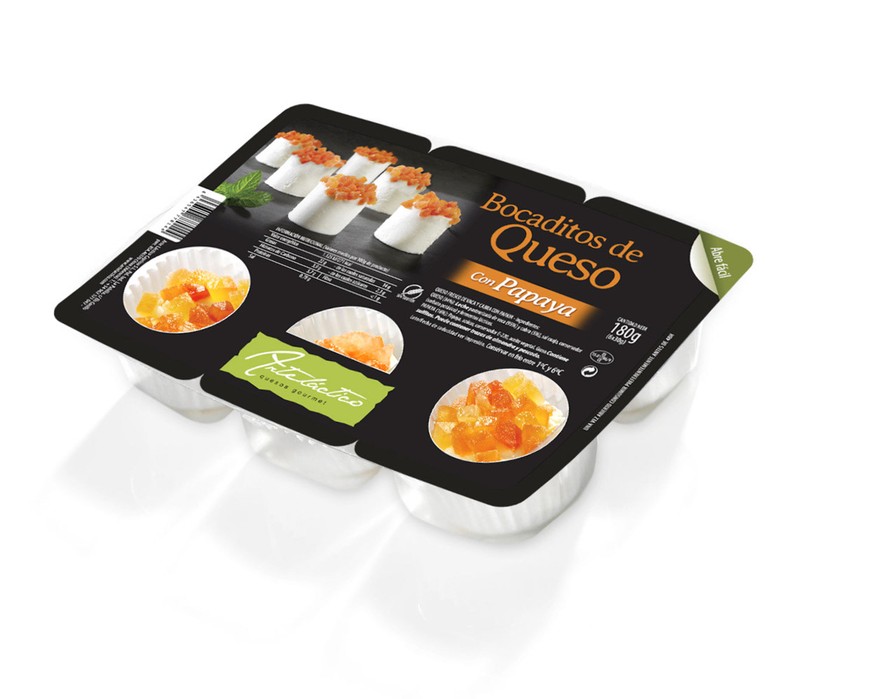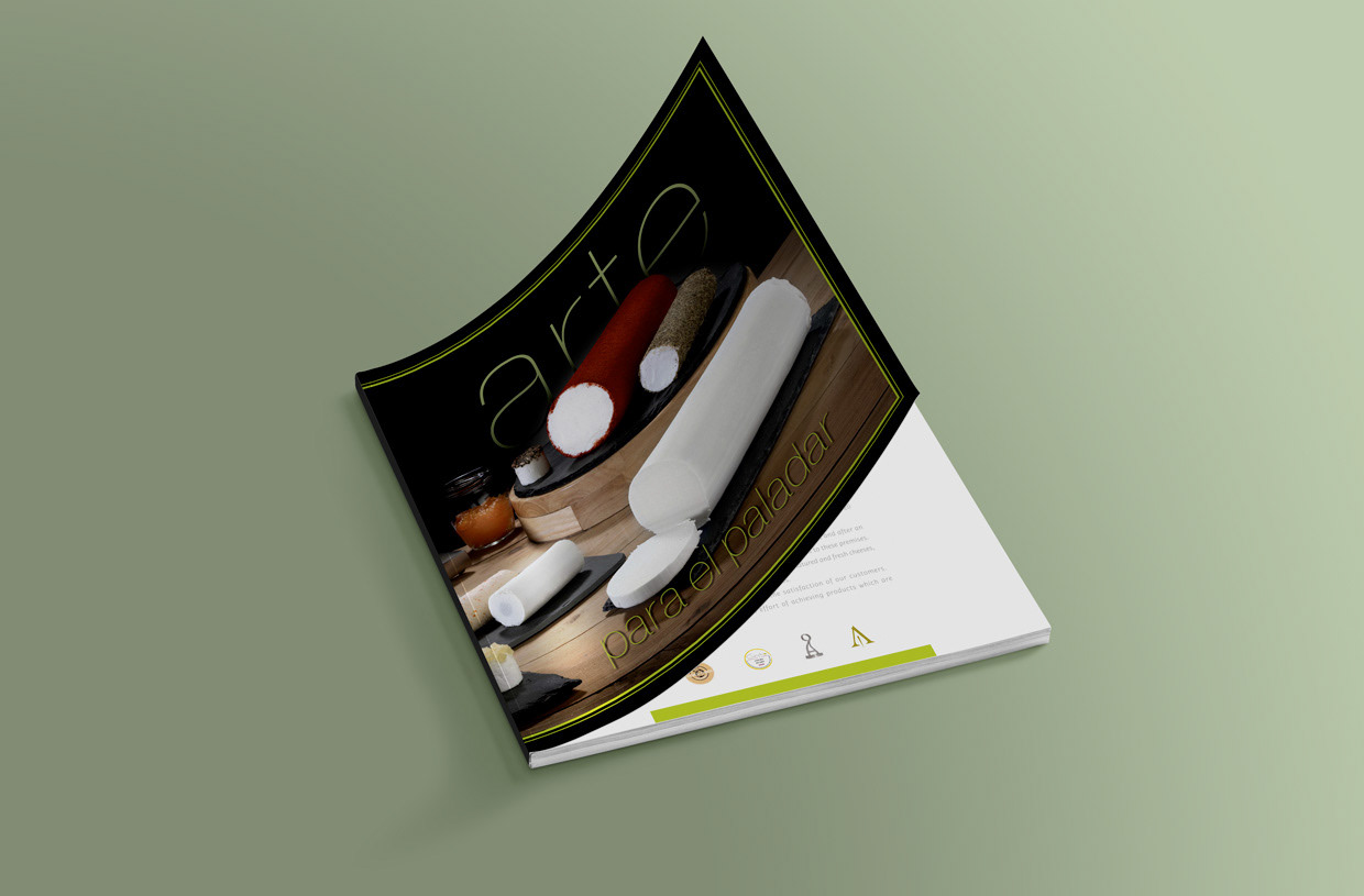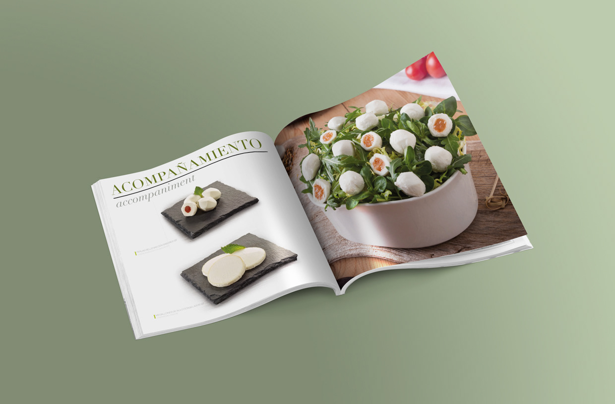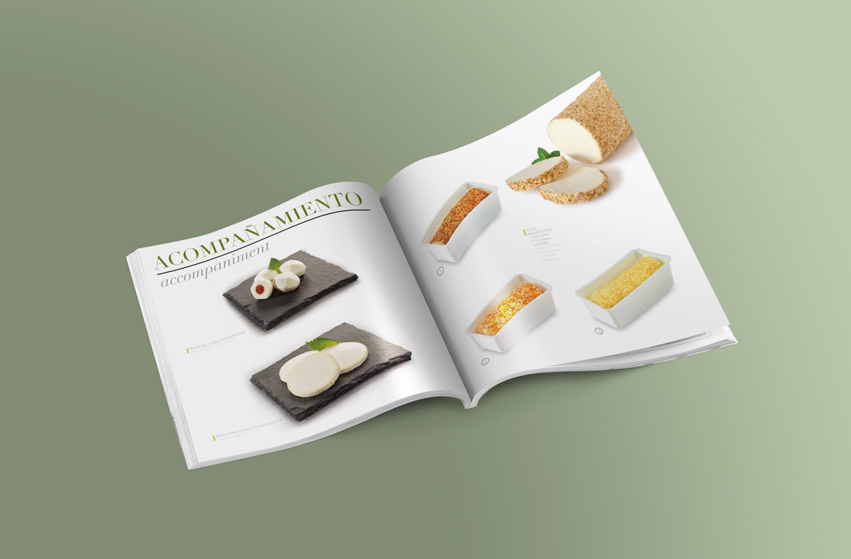 Diseño de catálogo, packaging y stand de feria para empresa de quesos gourmet.
