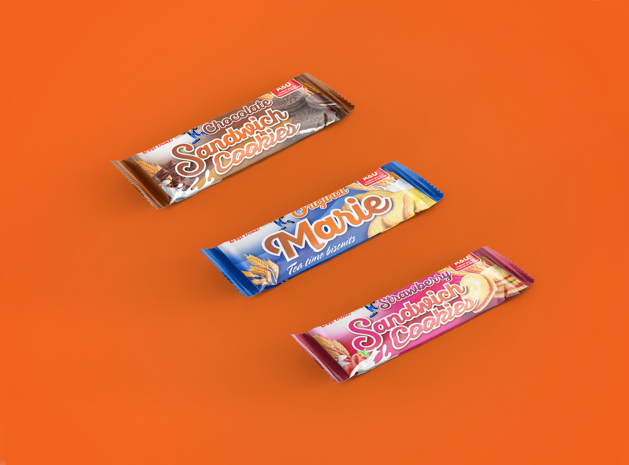 Diseño del etiquetado de galletas para Jadu, para el mercado africano.