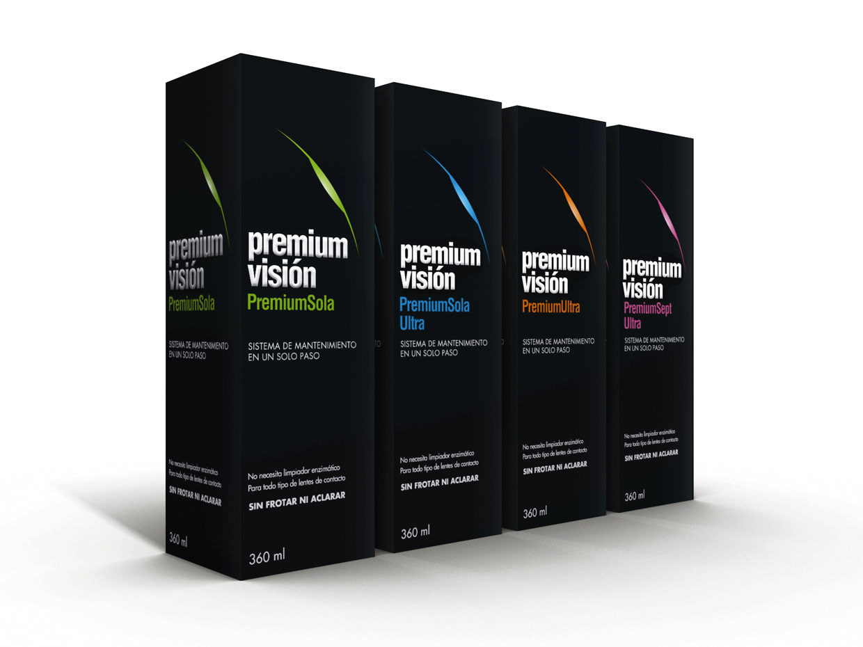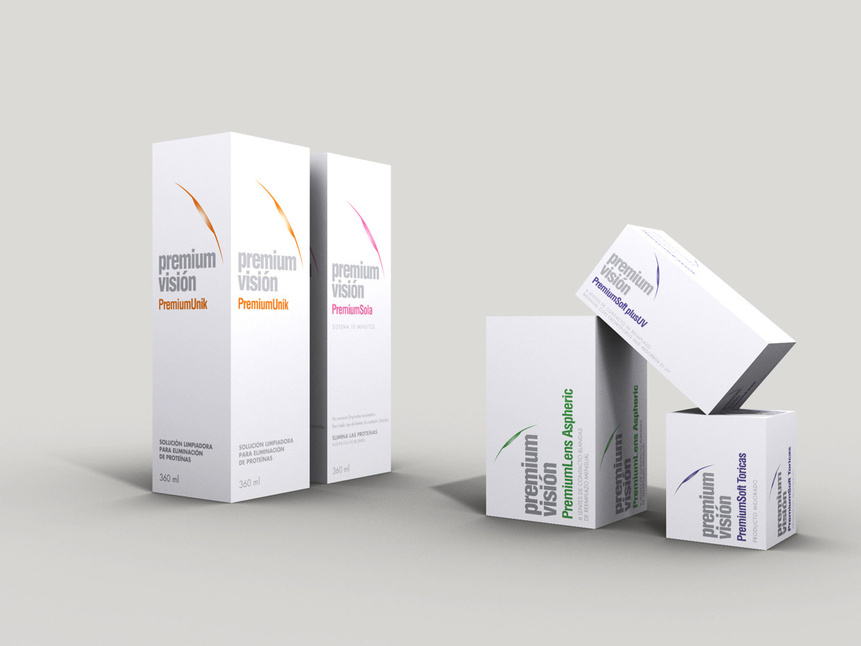 Diseño de marca y packaging para productos de contactología Premium Visión.